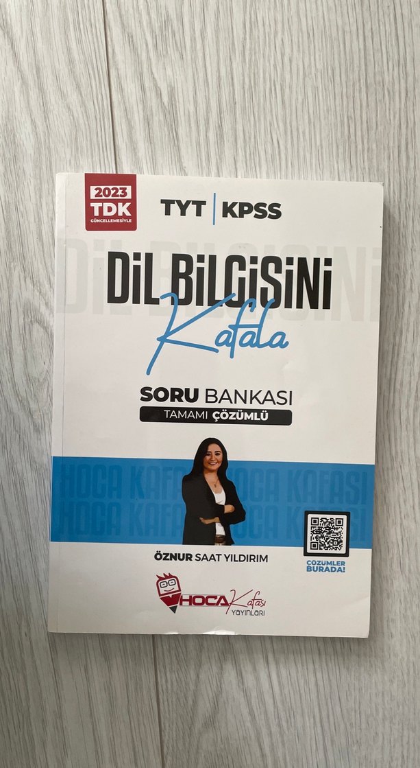2023 güncellemeli TYT ve KPSS için Öznur Saat Yıldırım'ın hazırladığı tamamı çözümlü Dil Bilgisi soru bankasıdır. İlk 3 testi çözüldü, gerisi boş bir kitap.