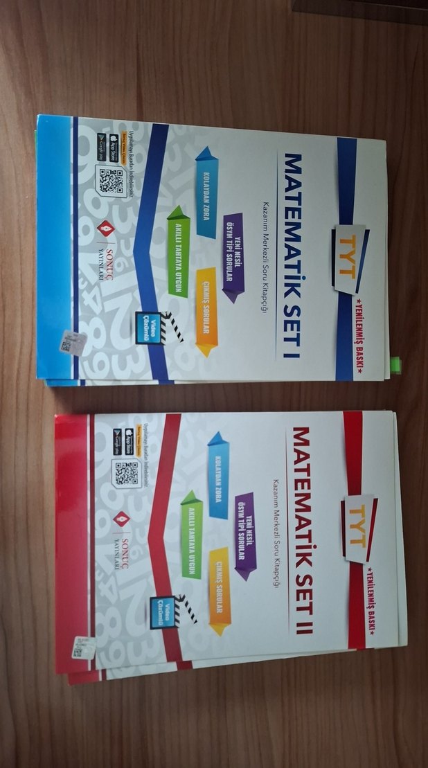 TYT Matematik Set I ve Set II kitapları, farklı soru tipleri ve çözümlerle sınav hazırlığını destekler. (set 1 de sadece sayılar fasikülü biraz çözülmüş geri kalanı sıfır .Kırmızı kitap hic çözülmemiş.)