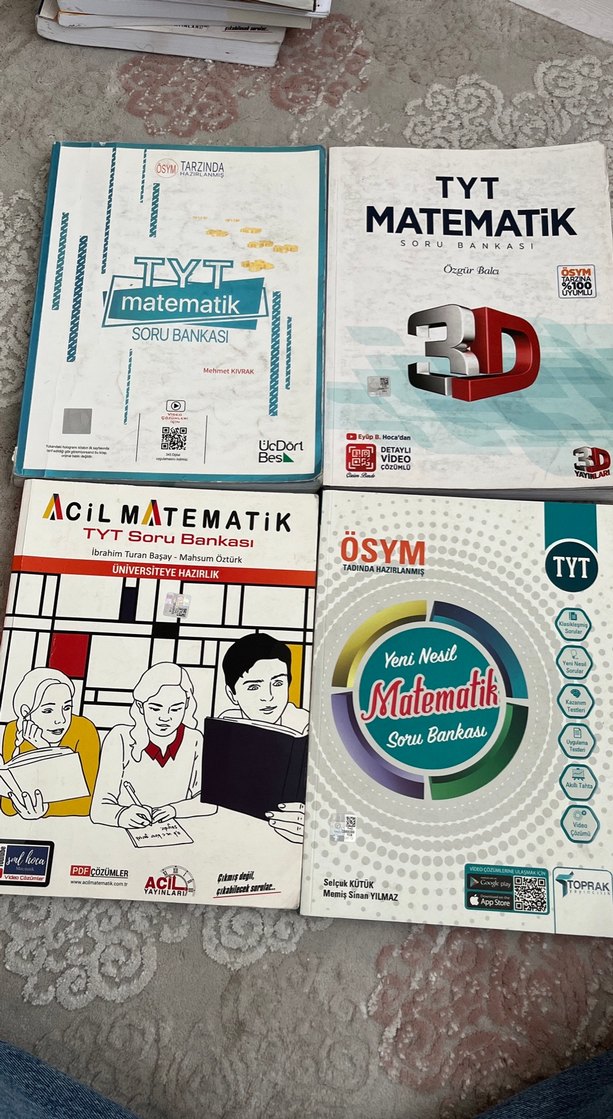 Detaylı çözümler ve video destekli dört adet TYT matematik soru bankası seti. Güncel içerik ve 3D özellikleri ile hazırlanmıştır. ❗️❗️❗️345 yayinlarinin yuzde 75i dolu acil matematigin yuzde10u 3d yuzde 10 toprak yayinlari hepsi bos TOPLU FIYATTIR