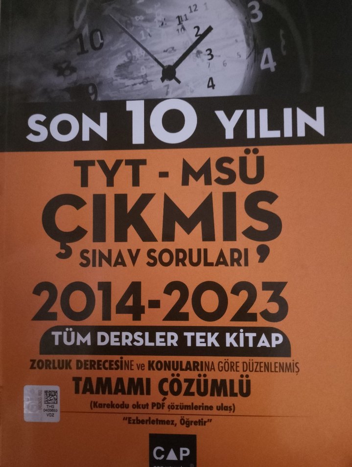 2014-2023 yılları arasındaki TYT ve MSÜ çıkmış sorularını zorluk ve konu bazında düzenlenmiş şekilde, tüm dersleri tek kitapta sunar. QR kod ile PDF çözümleri erişilebilir.Türkçe dışında pek fazla çözülmedi.