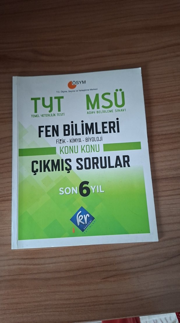 TYT ve MSÜ için Fizik, Kimya, Biyoloji konularında son 6 yılın konu konu çıkmış soruları içerir. (sadece ilk sayfası cözülmüş)