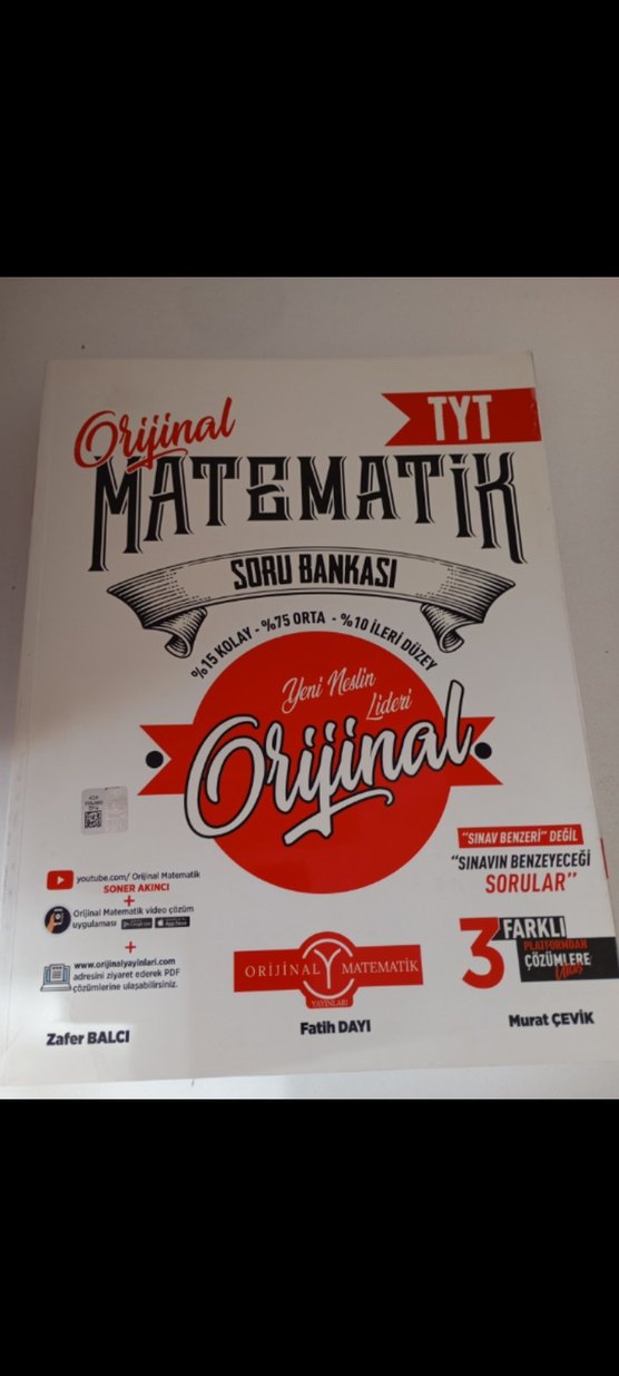 TYT Orijinal Matematik Soru Bankası, sınava benzeyen sorular ve 3 farklı çözüm yöntemi sunar. Yazarlar: Zafer Balcı, Fatih Dayı, Murat Çevik.