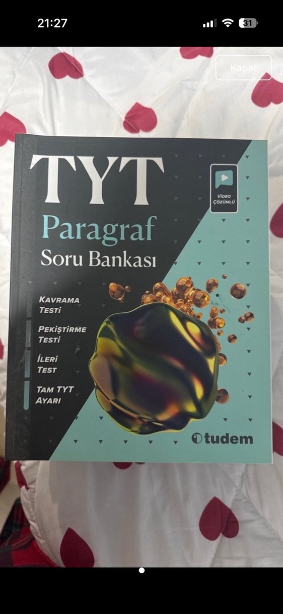 Tudem yayınlarından TYT Paragraf Soru Bankası, kavrama, pekiştirme ve ileri testleri ile tam TYT ayarı içerir.