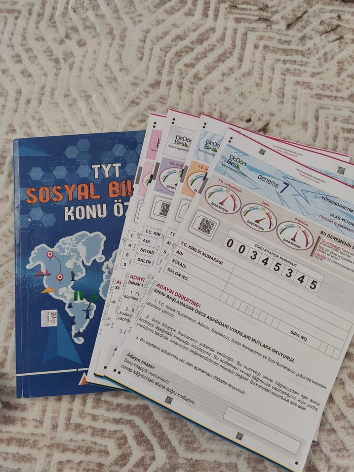 sadece tarih kisminda not var gerisi bomboş denemeler 345 ayt eşit agirlik denemesi 4 tane kalmisti.