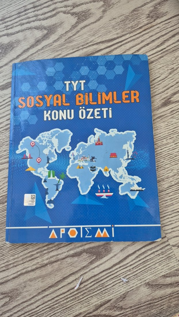 TYT sınavı için sosyal bilimler konularını özetleyen, temel kavramları içeren çalışma kitabı.Bazı sayfalarında altları çizilmiş yerler ve notlar mevcuttur