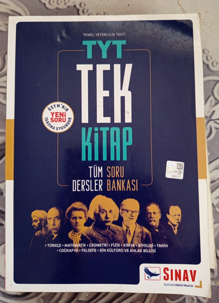 TYT Tek Kitap, Türkçe, Matematik, Geometri, Fizik, Kimya, Biyoloji, Tarih, Coğrafya, Felsefe, Din Kültürü ve Ahlak Bilgisi gibi tüm derslerin güncel soru bankasını içerir.