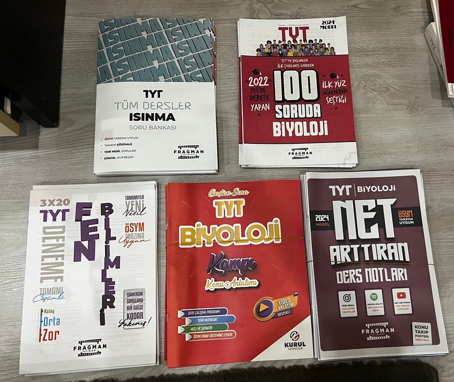 TYT tüm derslere yönelik ısıtma soru bankası ve video destekli biyoloji kamp anlatım kitabı içerir. Güncel sorular ve kapsamlı içerik sunar.
