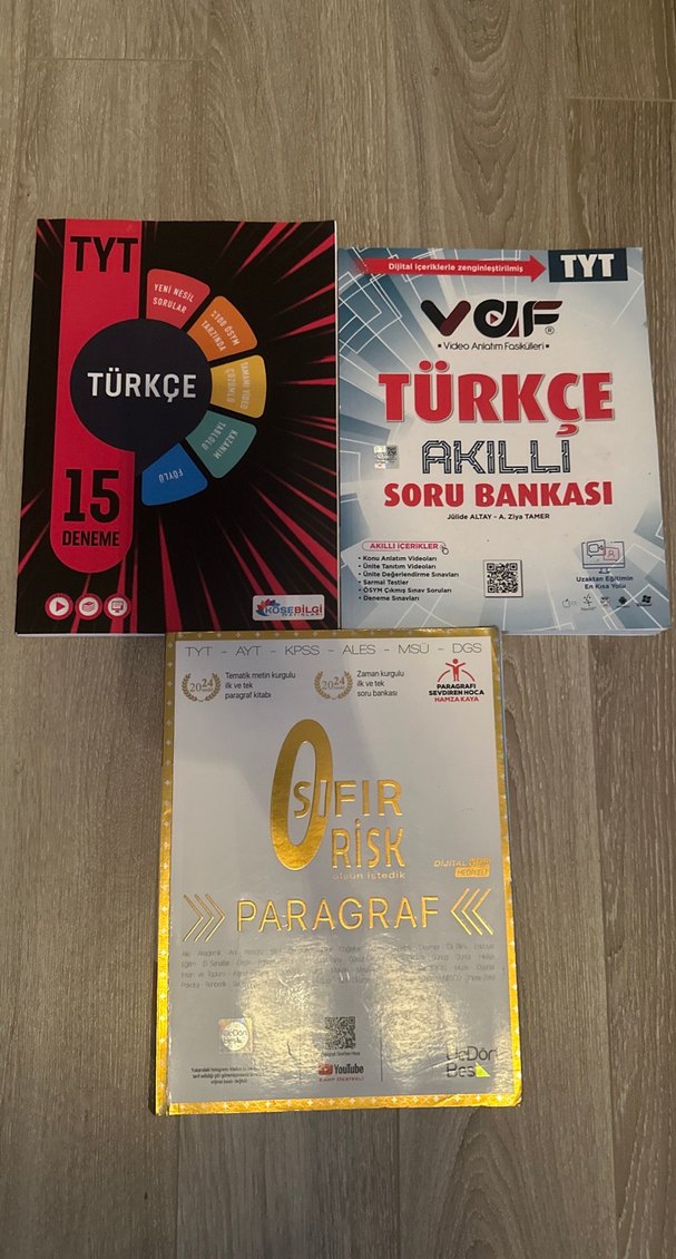 TYT için 15 deneme, akıllı Türkçe soru bankası ve sıfır risk paragraf kitabı içeren sınav hazırlık seti.