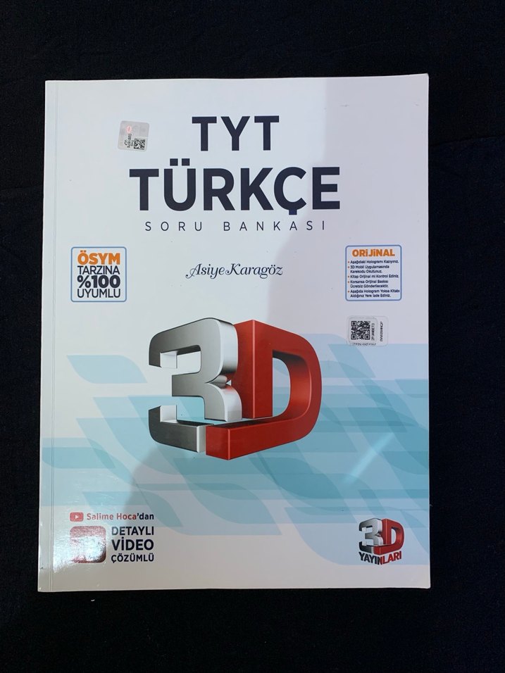 TYT Türkçe soru bankası, ÖSYM tarzına %100 uyumlu, Asiye Karagöz tarafından hazırlanmış detaylı video çözümler içerir. Sınav hazırlığı için uygundur. toplam 10 test yani ilk 6-7 sf çözülmüş kalan 120ye yakın test bomboş temiz