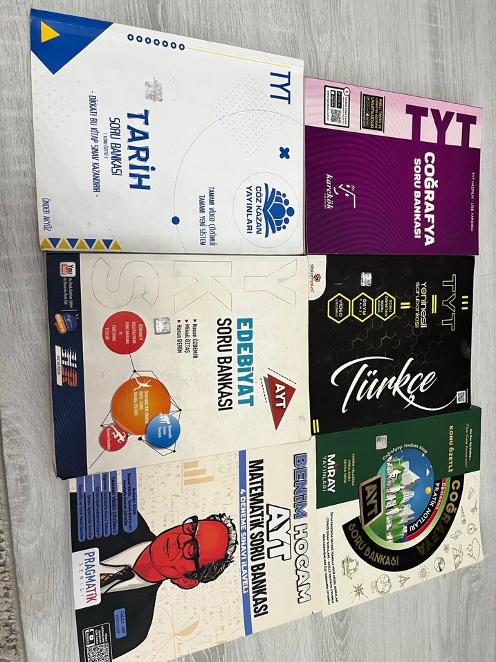 TYT ve AYT sınavları için Tarih, Coğrafya, Edebiyat, Türkçe ve Matematik konularını içeren soru bankası seti.
