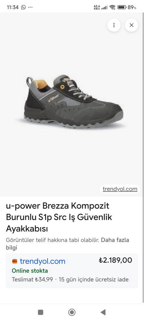 u-power Brezza iş ayakkabısı, kompozit burun, kauçuk taban ve cırt cırtlı kapanışa sahiptir. Gri renkte, desensiz ve S1P SRC güvenlik standartlarına uygundur. ÜRÜN İHTİYAÇ FAZLASI OLDUĞU İCİN SATILIK TERTEMİZ ÜRÜN BİR KERE GÖREVDE GİYDİM ONA BAĞLI KİRLERİ MEVCUTTUR 0 DAN FARKI KİRİ DİYEBİLİRİM 0 FİYATINI DA BELİRTTİM DETAY İSTEYENE YARDIMCI OLURUM HAYIRLI BOL SATIŞLAR