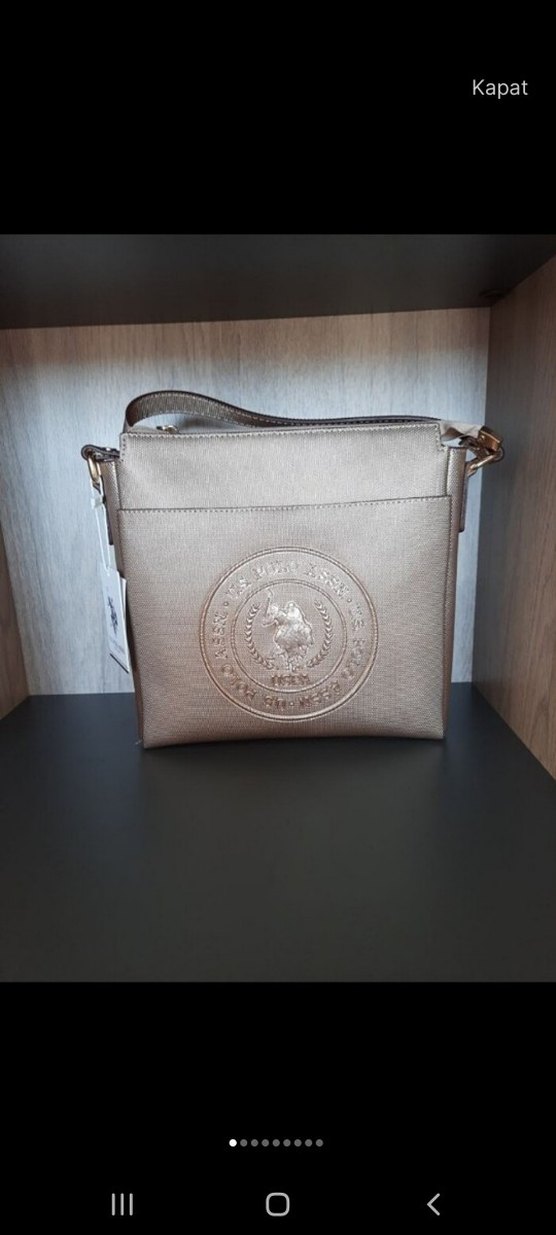 U.S. Polo Assn. marka, bej renkli deri kadın çapraz çanta. Baskılı logo ve kemerli detaylara sahiptir. Klasik şıklık ve günlük kullanım için uygundur.