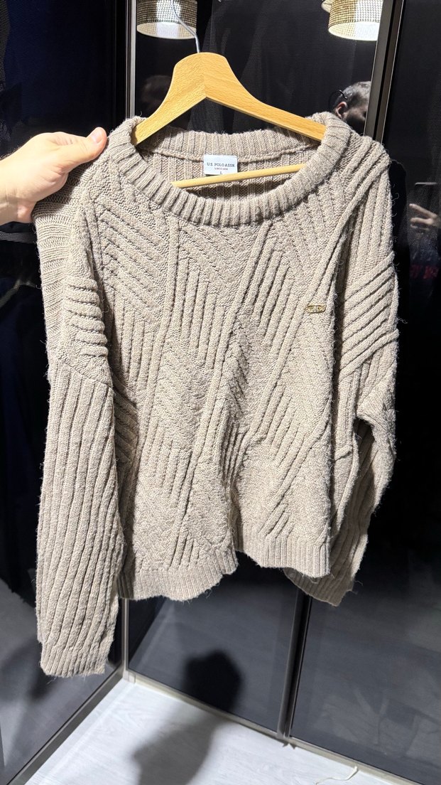 U.s Polo Assn. Bej Kadın Oversize Triko Kazak