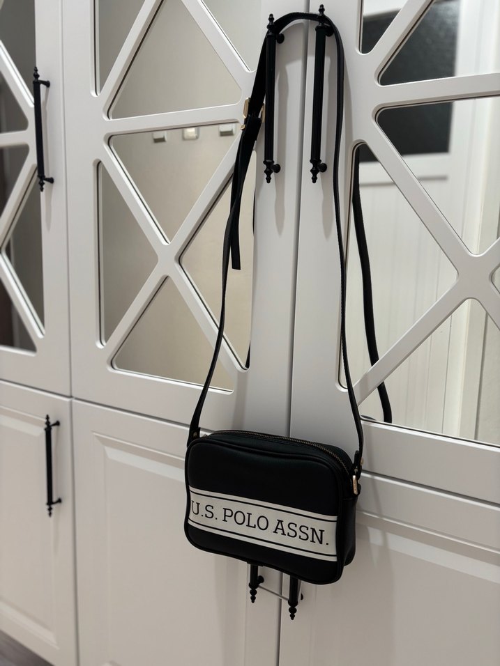 U.S. Polo Assn. marka beyaz deri çapraz çanta, koyu baskılı desen ve kemerli askıya sahip, trend sokak stiline uygun. 0 ayarında. Kusuru yoktur