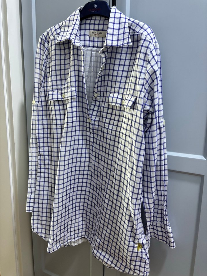 Pamuklu kumaştan, ekose desenli, düğmeli ve yakalı bu bol kesim bayan gömlek, uzun kollu tunik boyunda güzel bir kesim Medium Large uyumludur