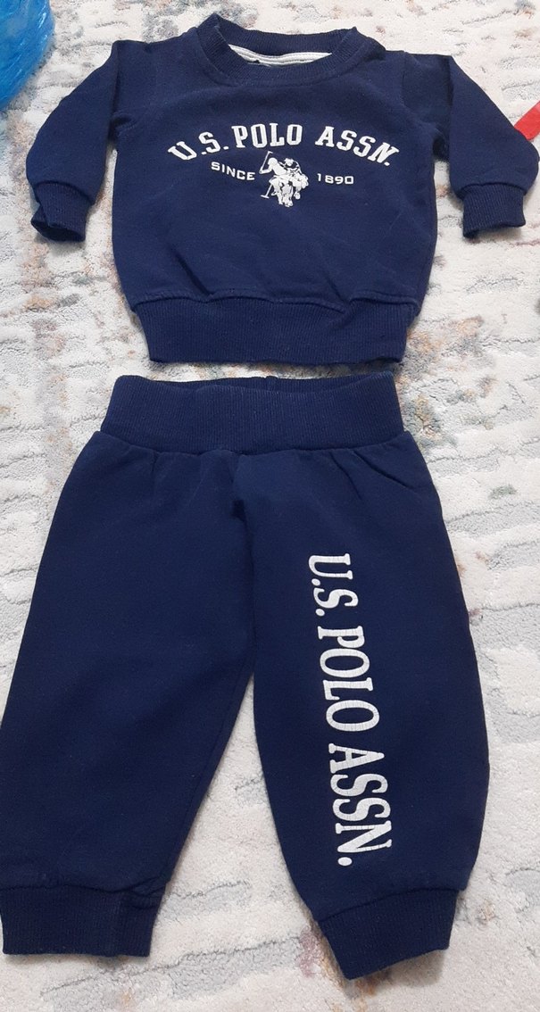 Koyu mavi U.S. Polo Assn. baskılı sweatshirt ve pantolondan oluşan, uzun kollu ve yuvarlak yakalı bebek takımı. Yumuşak ve sıcak kumaştan, cırt cırt detaylıdır.