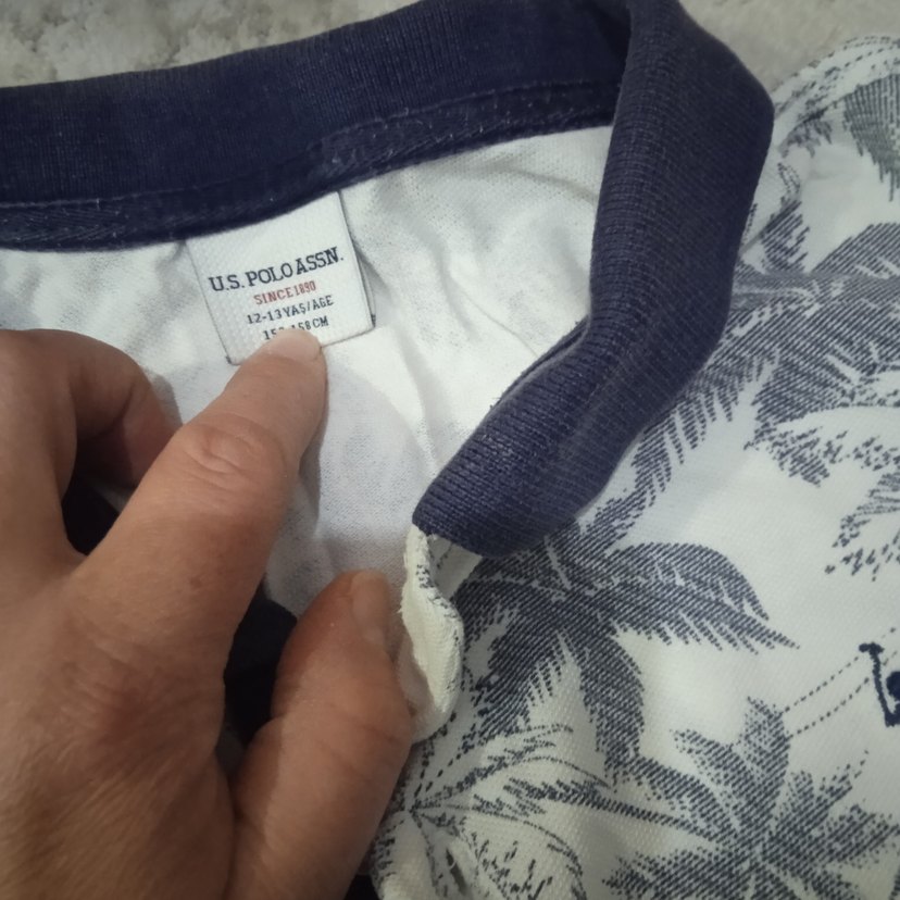 U.S. Polo Assn. erkek çocuk baskılı atlet, mavi ve gri renklerde, rahat yaka detaylı, 12-1 yaş bedeninde.