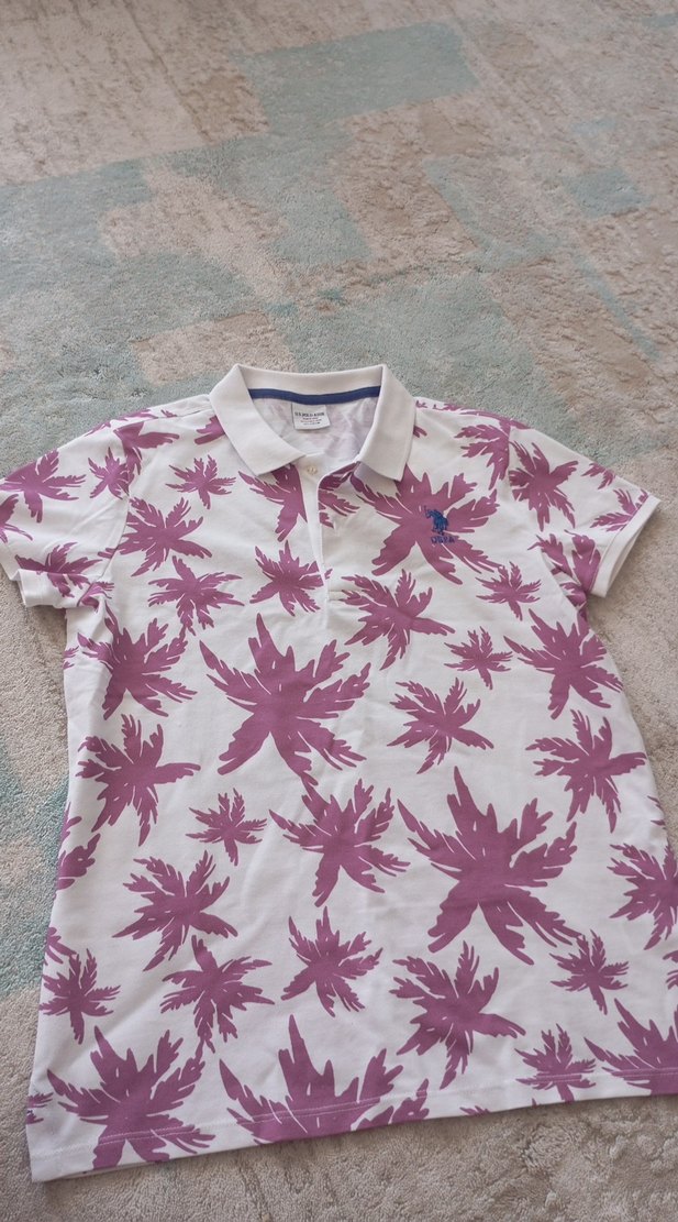 orijinal U.S. Polo Assn. erkek çocuk polo tişört, kısa kollu ve yakalıdır. Yumuşak sentetik kumaş üzerine pastel pembe baskılı, rahat ve geniş kesime sahiptir. 12-13 yaşa uygundur. Hediye geldi, oğlum beğenmediği için satıyorum. Sıfır üründür