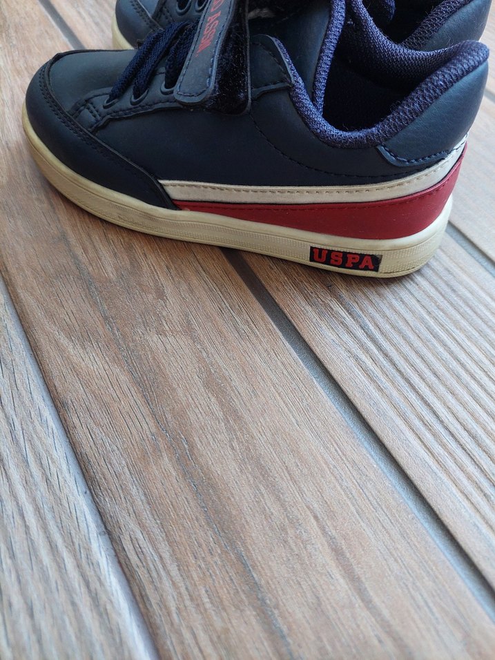 U.S Polo Assn. marka erkek çocuk spor ayakkabısı, koyu mavi renkte, baskılı detaylı ve cırtlıdır. Kauçuk taban dayanıklılık sağlar.