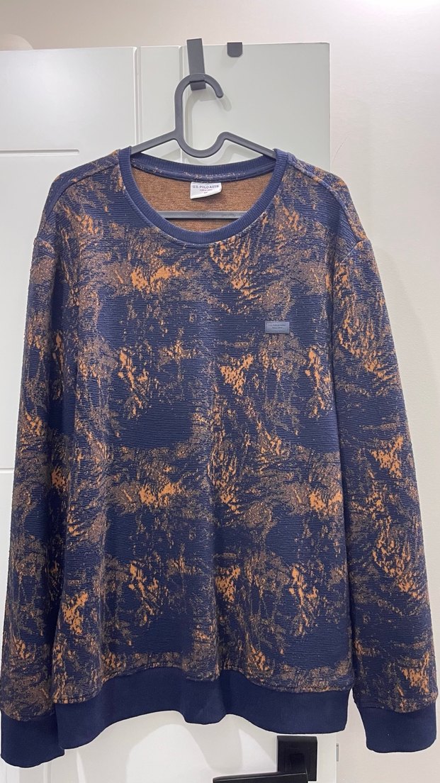 Erkekler için uzun kollu, yuvarlak yaka, bol kesim batik desenli, örgü görünümlü sentetik kumaştan sweatshirt. Ürün çok az giyildi. Defosu yoktur. Çok şık bir kazaktır. Sıcak tutan bir kumaşa sahiptir. soyut/kamuflaj benzeri jakarlı desenlidir. Omuzdan boy 74cm, iki koltukaltı arası 54 cm’dir.
