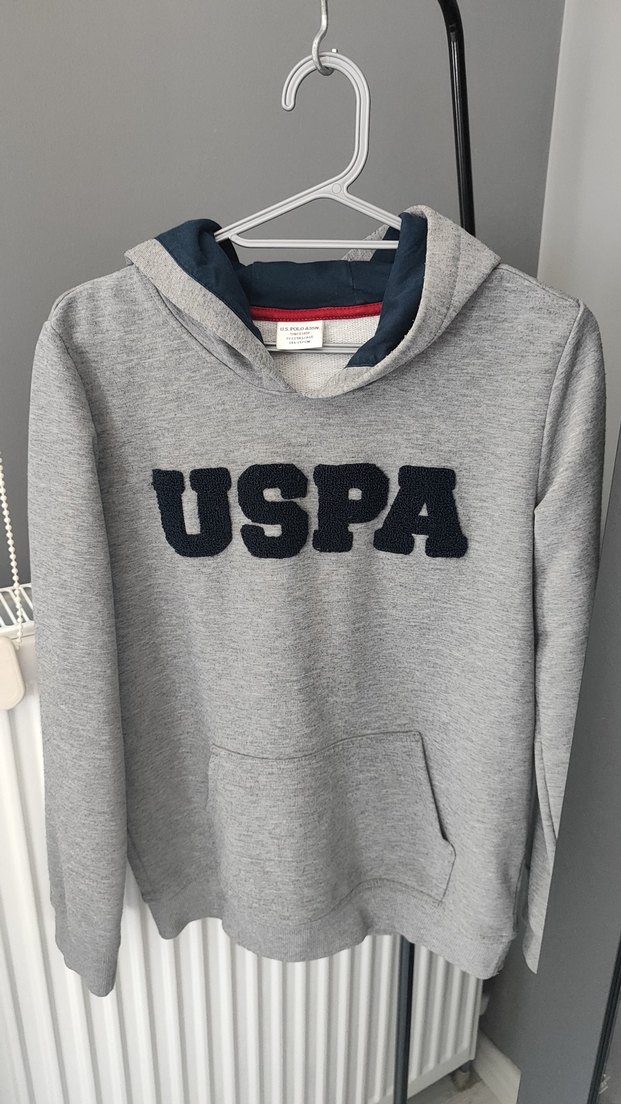 U.S. Polo Assn. gri erkek çocuk sweatshirt, kapüşonlu ve uzun kolludur. Yumuşak, 2 iplik kumaştan üretilmiş ve önünde baskılı USPA logosu bulunur. Rahat kesim ve sokak tarzına uygundur. 10 yaş içinde uygun olur