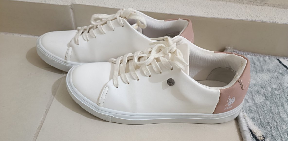 Sıfır ayarında sorunsuz Uspa kadın beyaz spor ayakkabı. Oldukça şık rahat kaliteli kullanışlı ayakkabı bir kaç kez kullanıldı sadece temizdir. İhtiyaç fazlası olduğu için satıyorum.