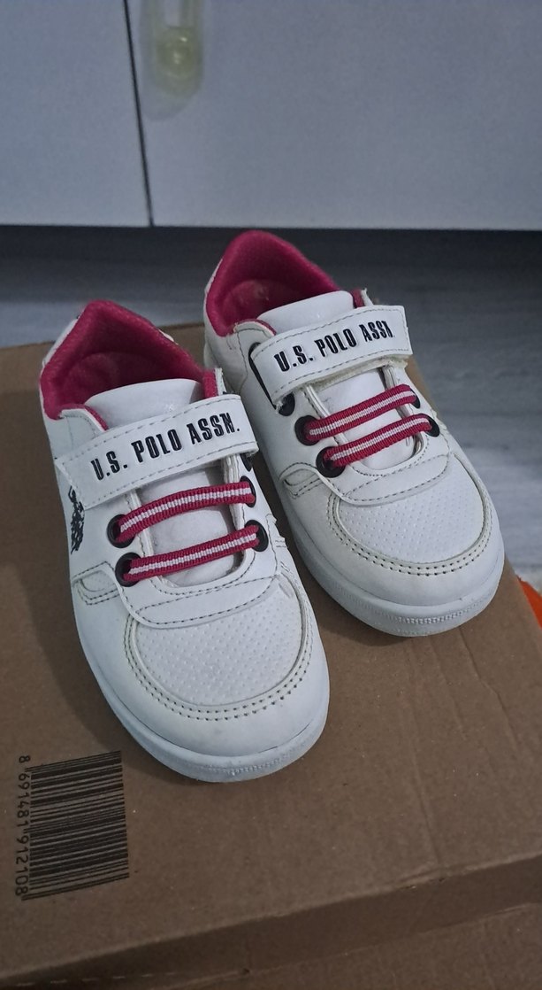 U.S. Polo Assn. kızlar için renkli baskılı, velcro bantlı ve kauçuk tabanlı beyaz sneaker. Trendy ve rahat sokak stili için uygundur.