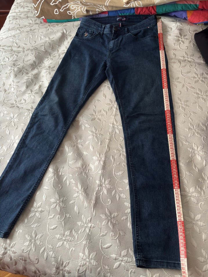 Erkekler için lacivert denim pantolon, regular fit ve elastik detaylıdır. Normal boyda, baskılı desene sahip, günlük rahat kullanıma uygundur. Trendy normcore stil için ideal.