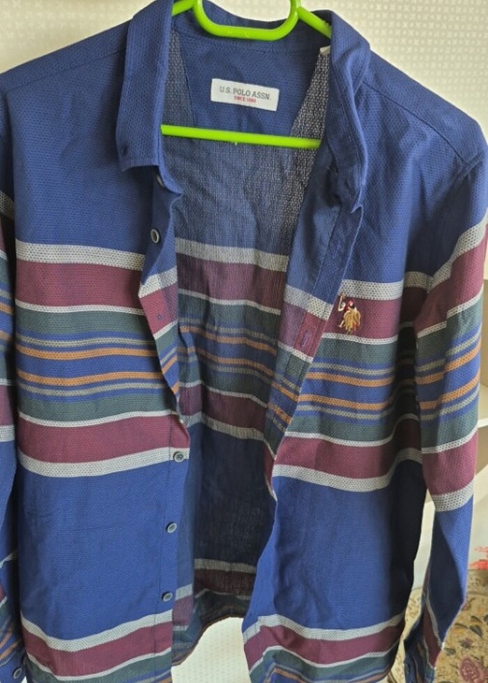 U.S.POLO ASSN markalı 13-14 yaş erkek çocuk gömlek çok temiz beden olmadığı için satıyorum iki kez giyildi. Uzun kollu lacivert karisik renkli çizgili solma yok düğmeleri tam. Hiç bir sorunu yok boyu 65 cm eni 45 cm.