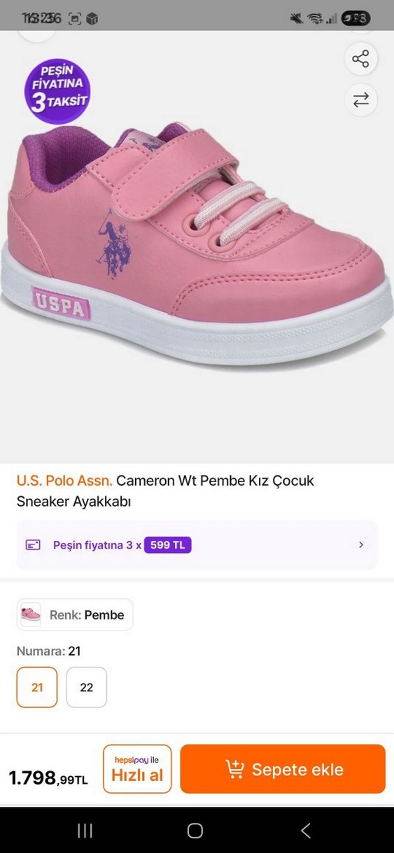 U.S. Polo Assn. pembe kız çocuk sneaker, pastel renk, cırt cırtlı ve kauçuk tabanlı, günlük sokak stili için uygundur.