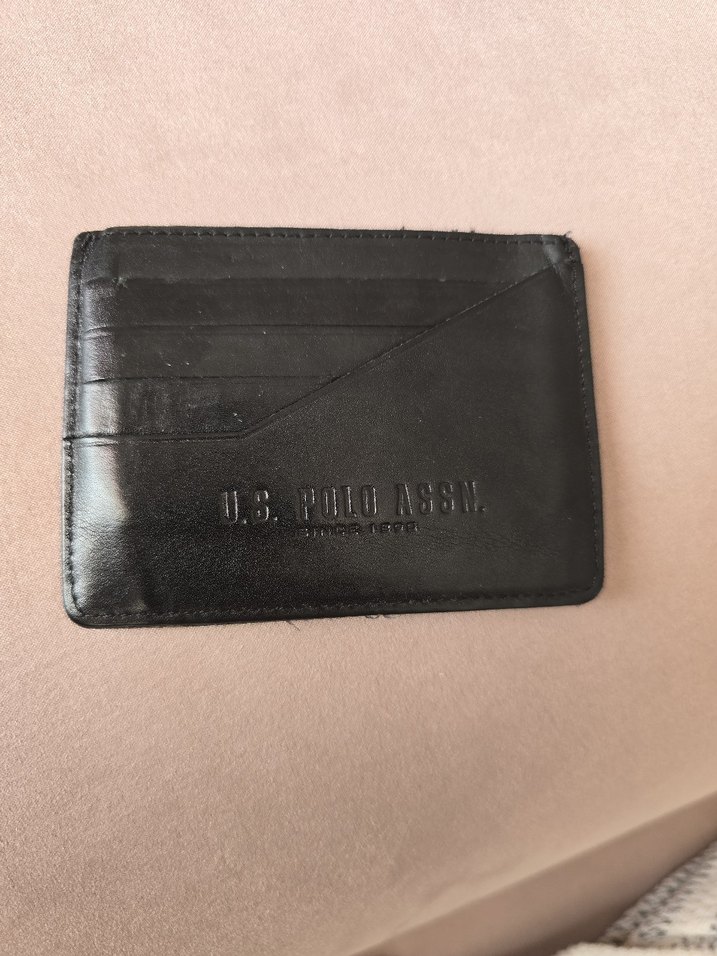 U.S. Polo Assn. marka siyah erkek cüzdan, baskılı logo ve çoklu kart bölmeleriyle sokak giyimi tarzında tasarlanmıştır.