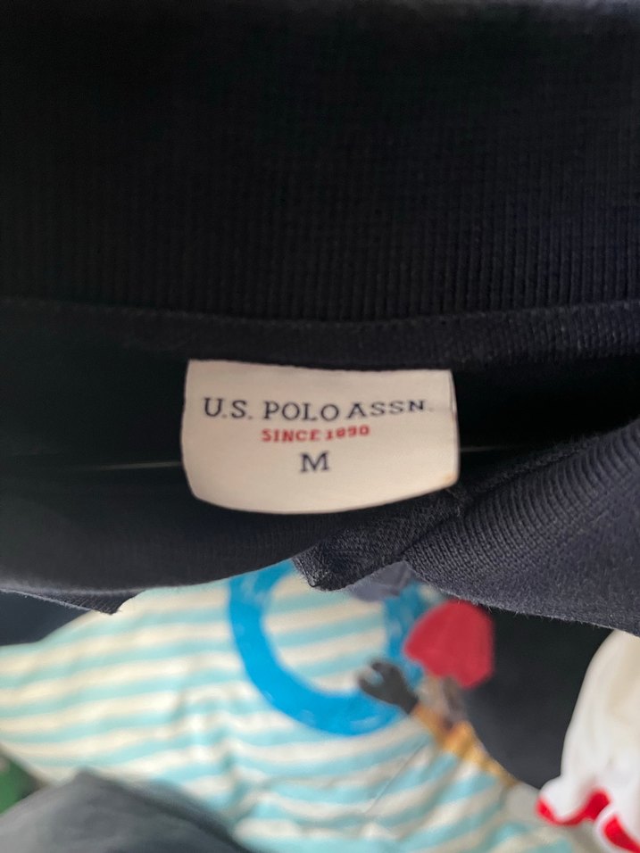 U.S. Polo Assn.'den siyah, uzun kollu, baskılı ve Velcro detaylı, vücuda oturan erkek polo tişört. Sentetik, rahat kumaşla günlük sokak stili için uygun.