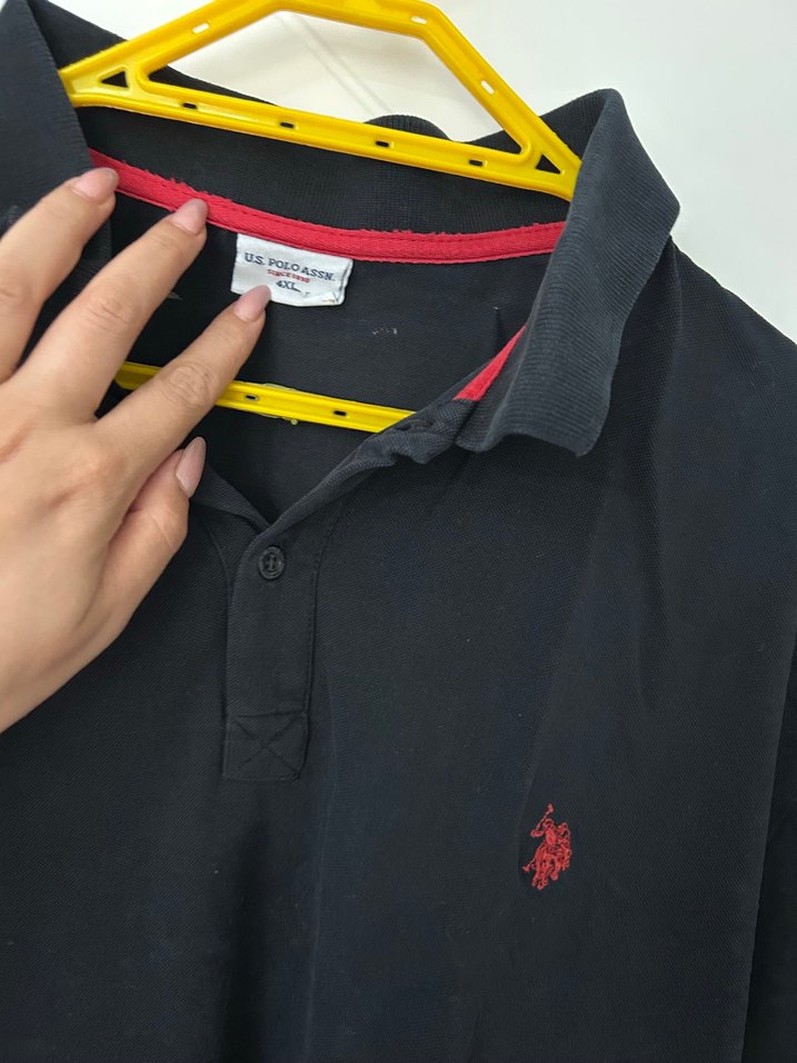 U.S. Polo Assn. siyah, fitted erkek polo tişört. Yaka, kısa kollu, düğmeli ve baskılı detaylı, sentetik kumaştan üretilmiştir.