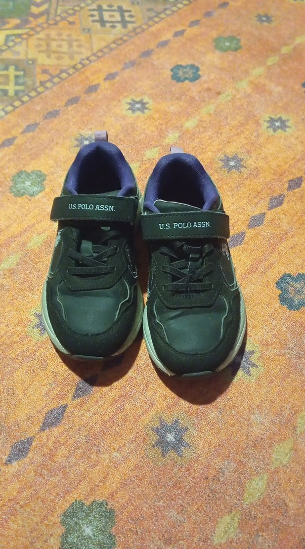 U.S. Polo Assn. marka siyah baskılı kız çocuk spor ayakkabısı, kaymaz kauçuk tabanlı ve kolay giyilen cırt cırtlıdır. Sokak stiline uygun.