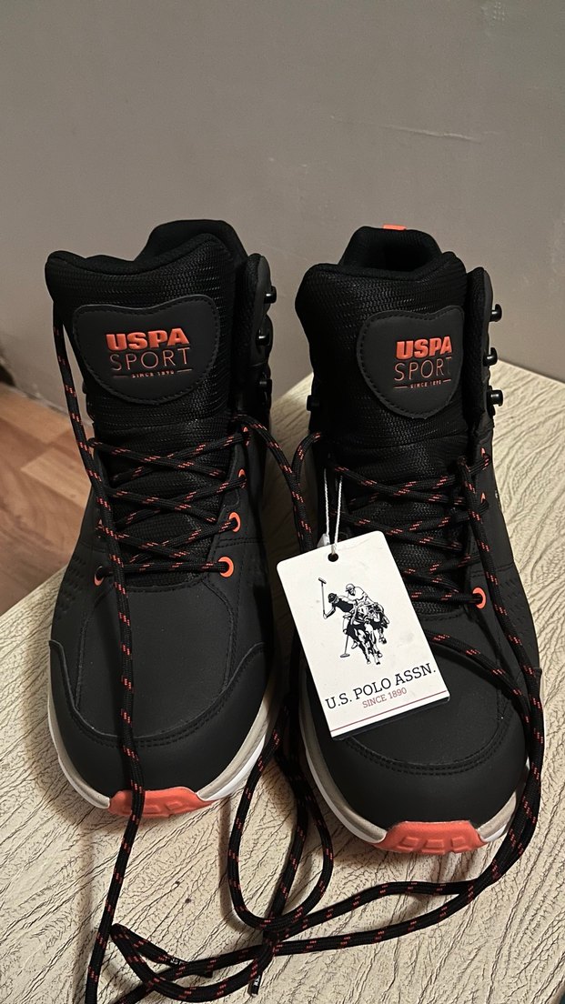 U.S. Polo Assn. marka siyah erkek botlar, baskılı desene ve cırt cırtlı kapamaya sahiptir. Dayanıklı kauçuk materyalden üretilmiştir, spor ve sokak tarzı için uygundur. Hiç kullanılmamıştır, etiketi üzerindedir. Pazarlık vardır.