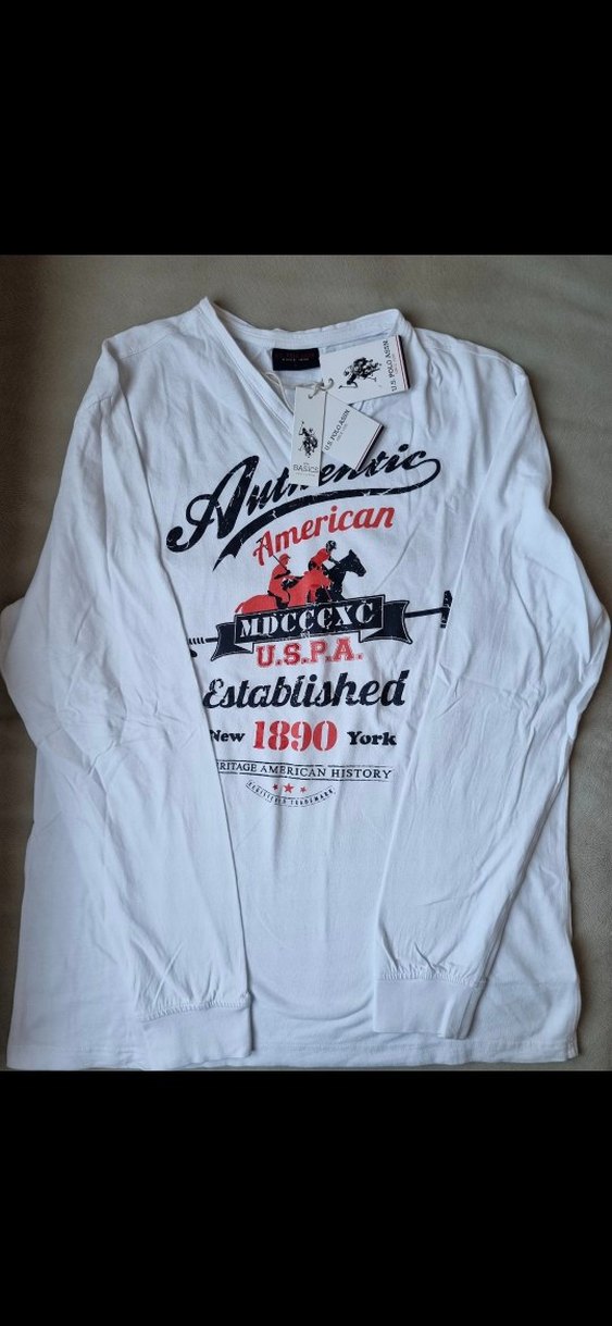 Pamuklu, uzun kollu, beyaz erkek polo tişört. Gevşek kesim, baskılı yazı ve grafiklerle sokak stiline uygun, günlük kullanım için rahat bir parça.