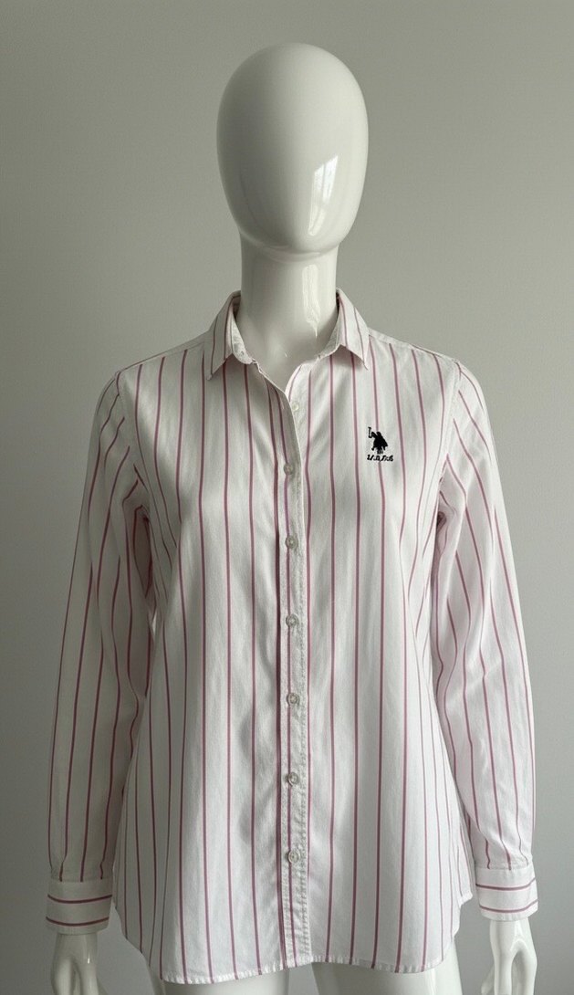 U.S Polo Düğmeli Çizgili Beyaz Kadın Gömlek