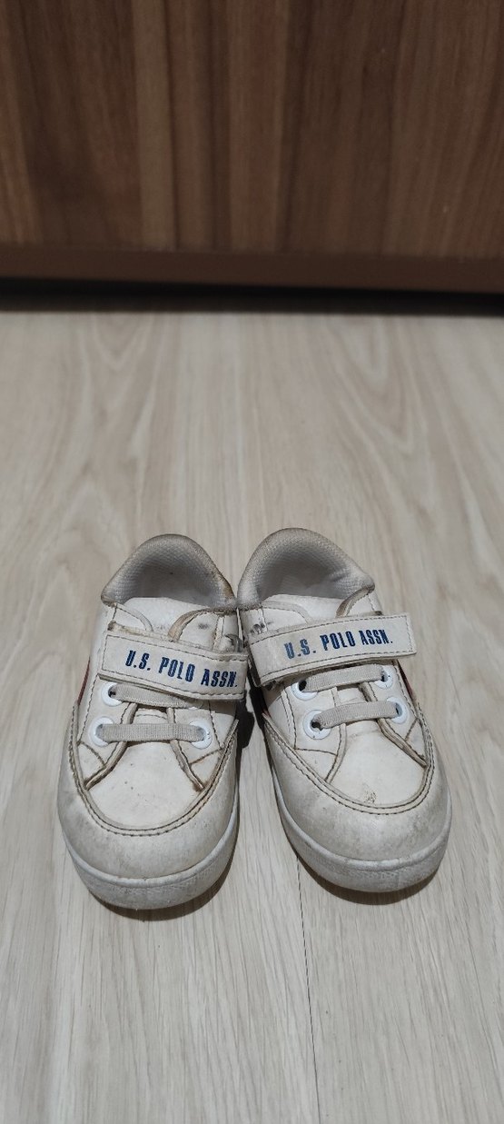 Cırt cırtlı, kauçuk malzemeden yapılmış beyaz erkek çocuk spor ayakkabısı, U.S. Polo Assn. logosu ile rahat ve sade tasarım. #uspolo#21#numara#