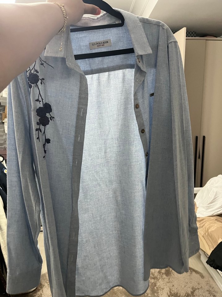 Deformesiz acık mavimsi kadın gömlek orjınal.
