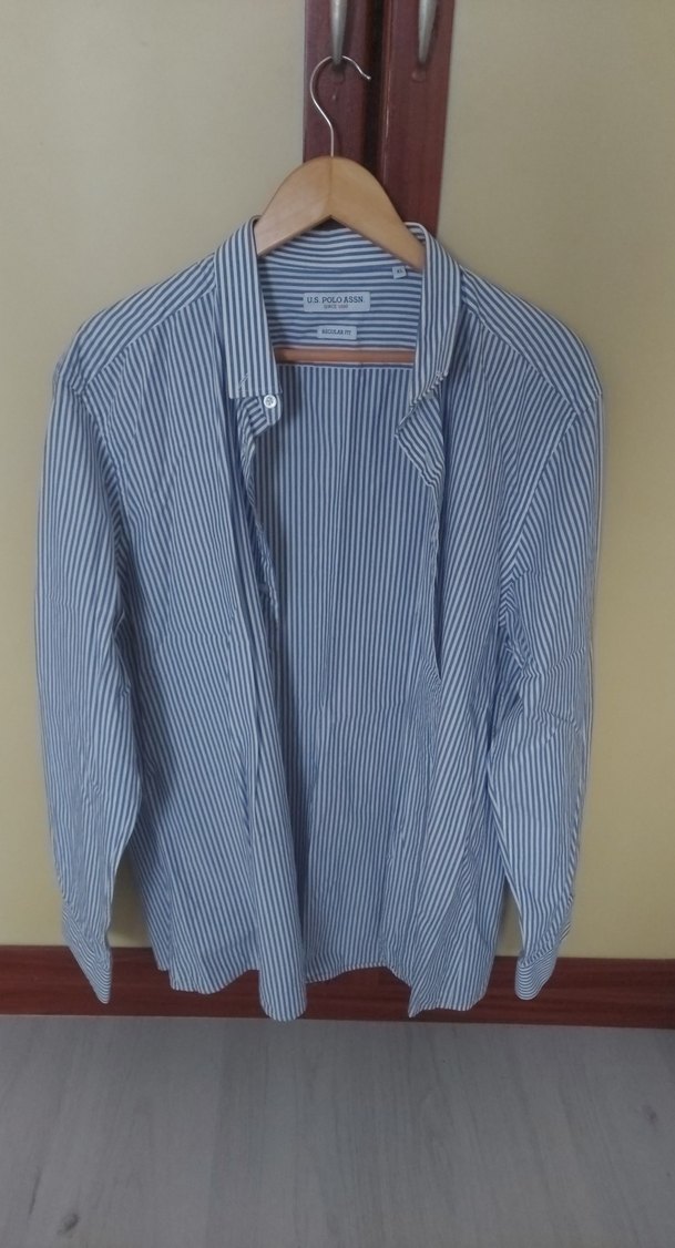 U.S. POLO Marka Mavi Çizgili Pamuklu Erkek Gömlek