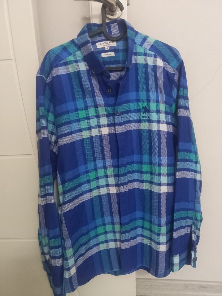 Ürün az kullanılmış ama deformasyonu yoktur.M beden .Uzun kollu, düğmeli ve yakalı erkek gömleği. pamuklu kumaştan, bol kesim ve normal boyda, açık mavi ekose deseniyle rahat bir tarz sunar.