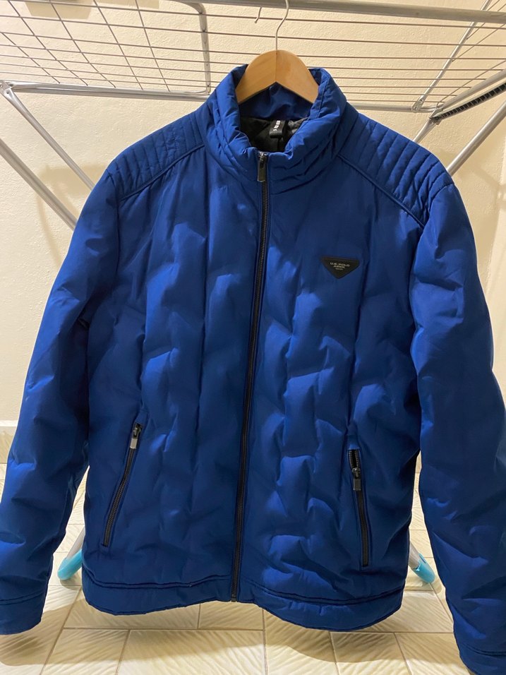 Parlak mavi renkte, fermuarlı ve uzun kollu, erkek mont. Notlu yaka detayı ve günlük kullanıma uygun yumuşak dokulu kumaş içerir. Birkaç kez kullanılmıştır herhangi bir kusuru deformesi bulunmamaktadır. Kaz tüyüdür. L bedendir. M-L bedene uygundur