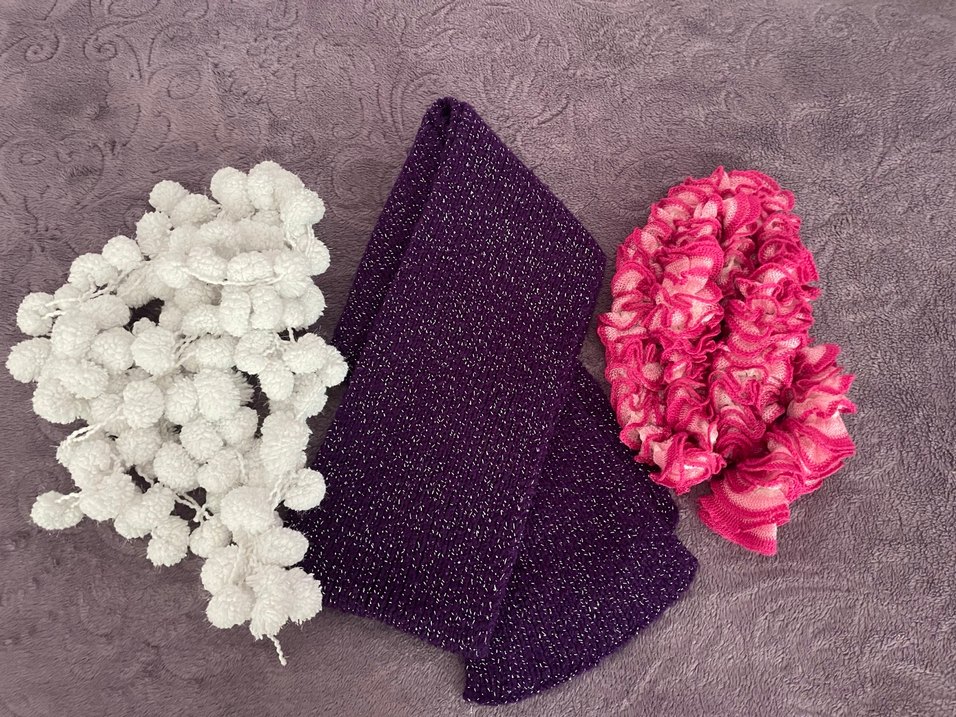 Hepsi tek fiyat Mor atkı uzunluk 160 cm pembe ve beyaz olanlar 140 cm civarı uzunluğunda