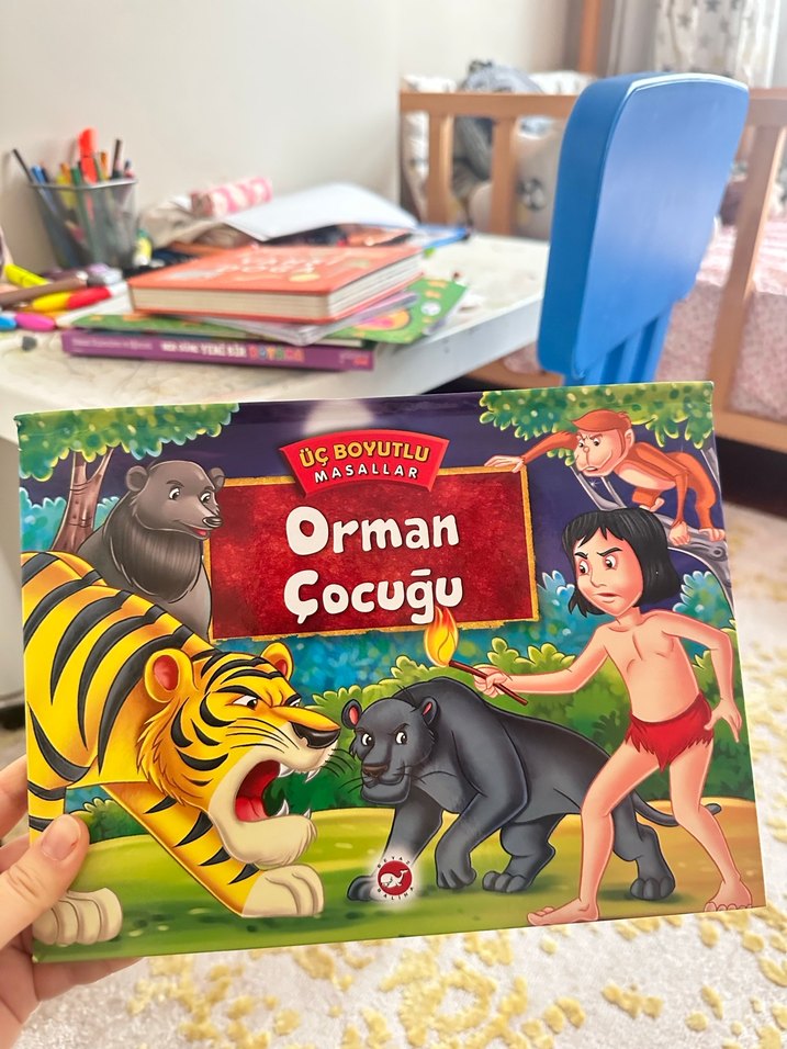 Ormanda yaşayan çocuk ve vahşi hayvanların yer aldığı üç boyutlu masallar kitabı.