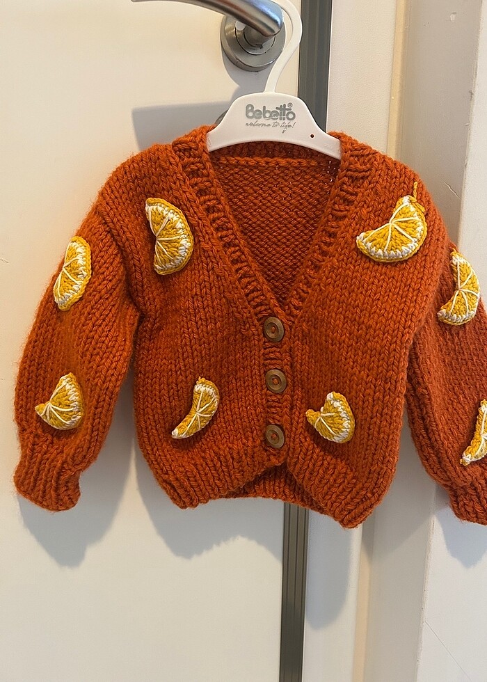Üç boyutlu portakallı turuncu bebek örme hırka