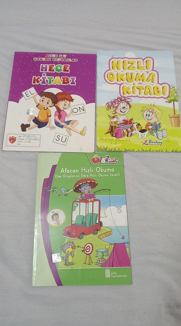 Hece ve hızlı okuma becerileri geliştiren, renkli çizimlere sahip üç çocuk kitabı.