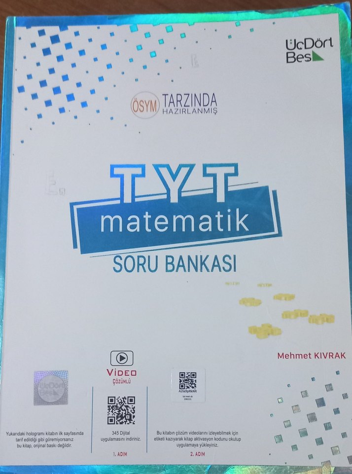 Üç Dört Beş TYT Matematik Soru Bankası. Sadece 87. sayfaya kadar çözülmüştür. 2023 basımdır. 416 sayfadır.