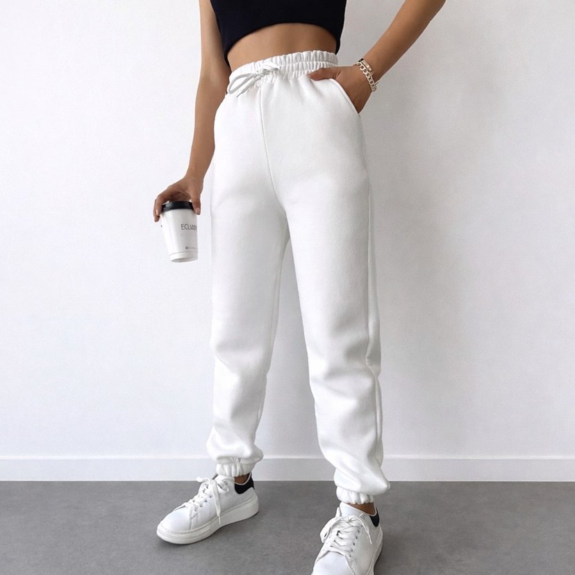Yumuşak ve sıcak kumaştan, lastikli beliyle rahat kesim beyaz eşofman altı. Günlük kullanıma uygun, sokak stili havasında. ️