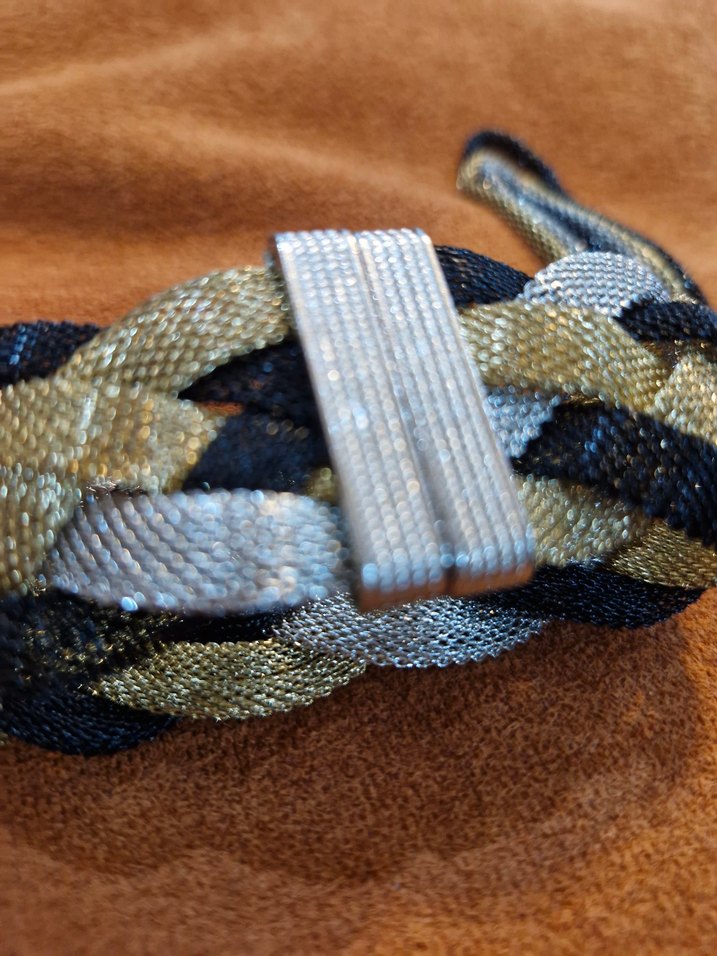 Üç renkli ,örme çelik kolye ,kelepçeli bilezik