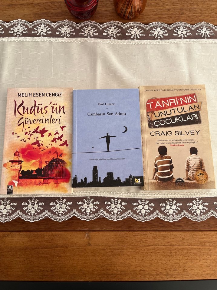 ADET FİYATIDIR!! Almak istenen kitap için ilan açtırınız lütfen Melih Esen Cengiz'in "Kudüs'ün Güvercinleri", Erol Hazar'ın "Cambazın Son Adımı" ve Craig Silvey'in "Tanrının Unutulan Çocukları" (SATILDI)romanları yer alıyor.